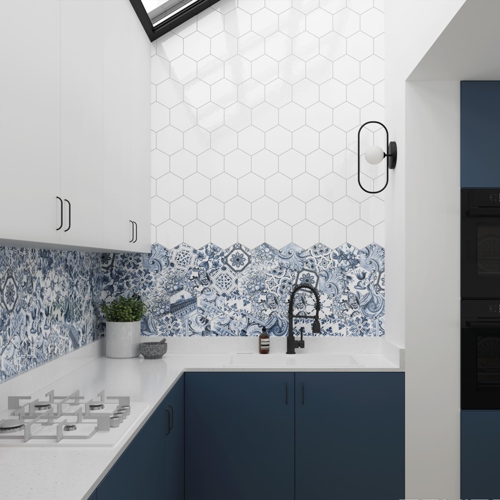 Hexatile Blanco Brillo è un rivestimento esagonale che consente design divertenti e dinamici per realizzare i tuoi progetti.